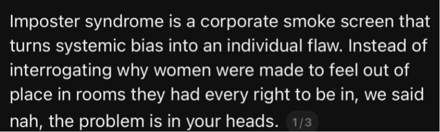 Perspective change: shift the goals around impostor syndrome. Focus on muting rather than eliminating the negative voices.